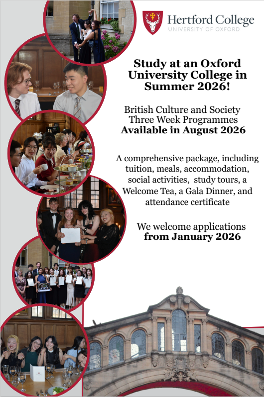 Since 2016, the Hertford College Open Enrolment programme has provided EFL students with a unique opportunity to enhance their language skills whilst learning about UK culture and residing in our beautiful and historic college.