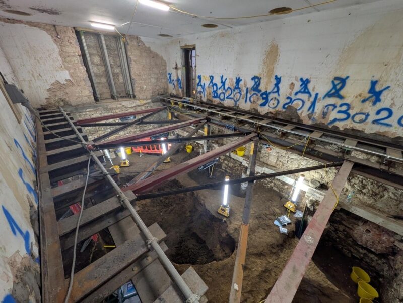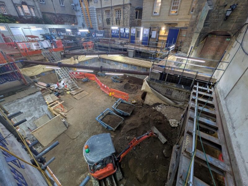 This week, Oxford Archaeology continued to excavate the eastern side of the quad and will progress towards the centre next week. Additional lighting has been installed around and over the quad to assist those working within it during the darker parts of the day