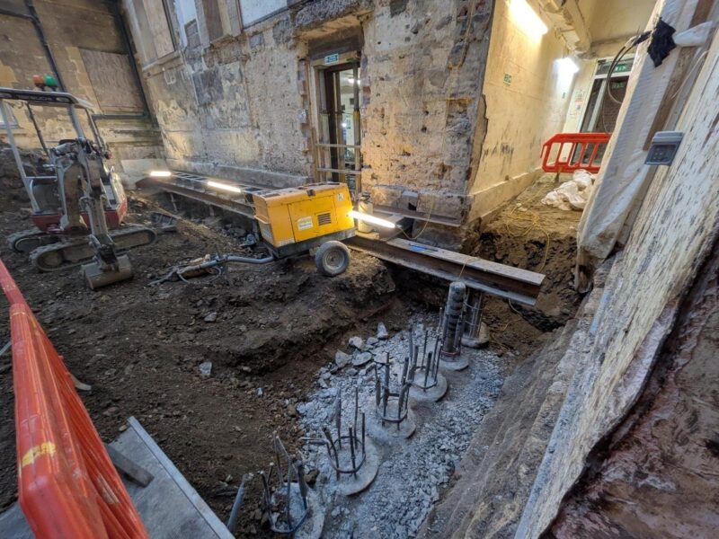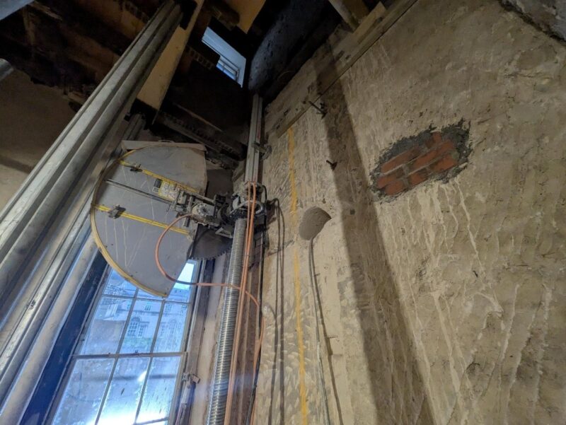 Preparations are in progress for the replacement of the 2nd floor lintels, and making good the existing walls and ceilings with lime plaster.