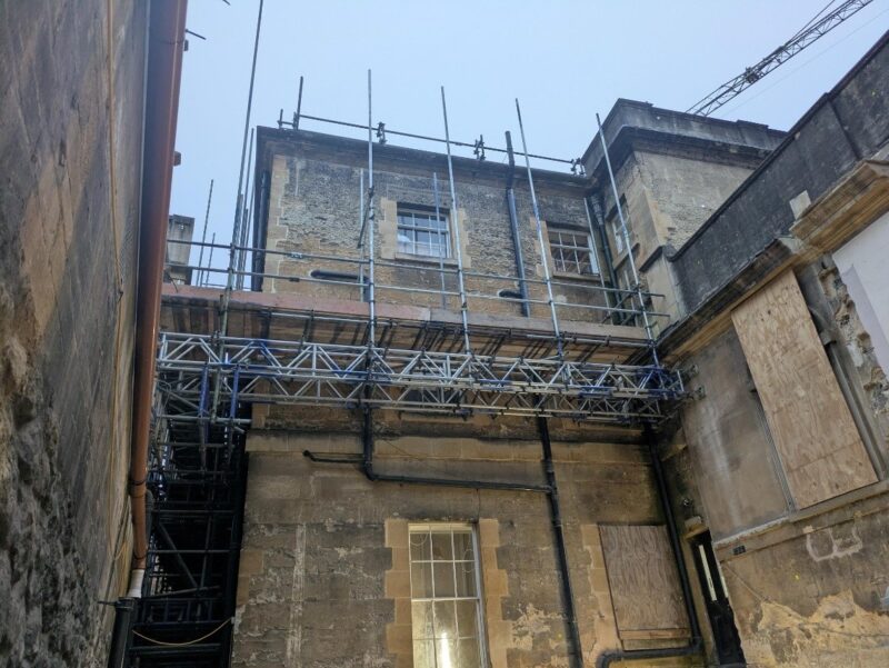 Scaffolding has been erected to facilitate remedial works to the West Range 2nd floor south-east corner.