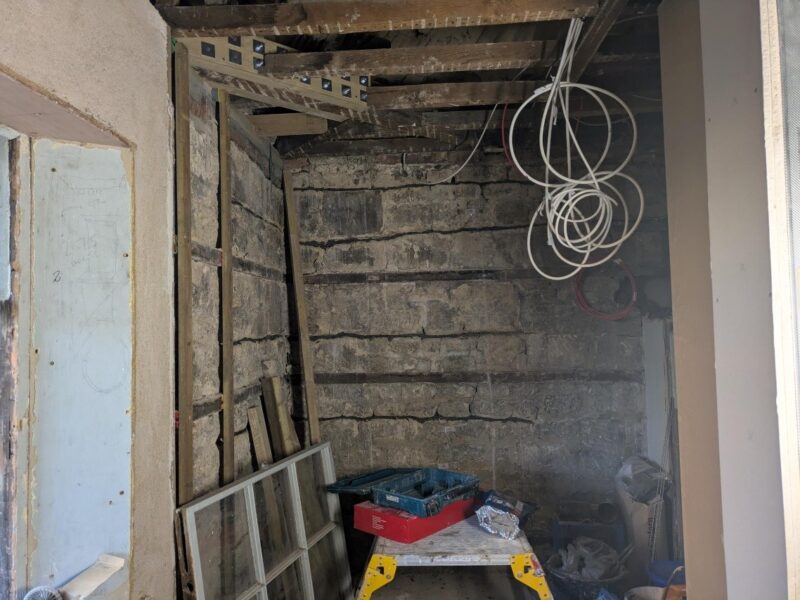 In the former chapel, underpinning to the eastern wall was completed and the contractors are doing the same to the western wall. Oxford Archaeology are excavating under the former chapel, and the remaining north and south stone walls will be removed in conjunction with this activity.