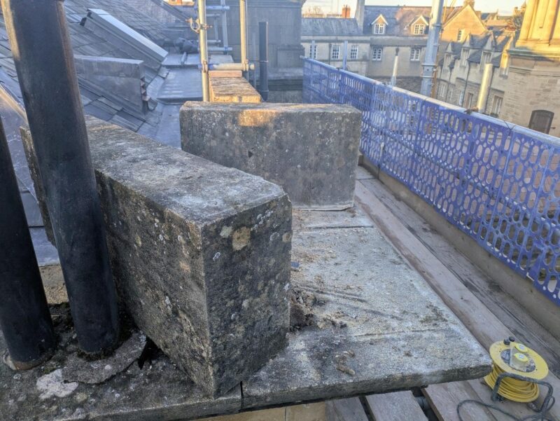 Within the West Range, OG Stonemasonry have commenced the stone and structural remedial works to the high-level south-east corner.