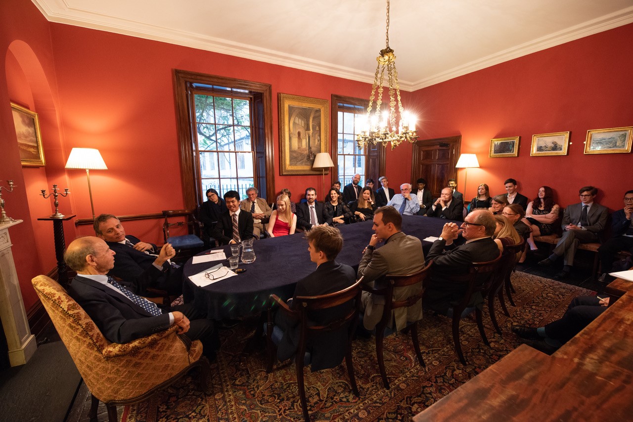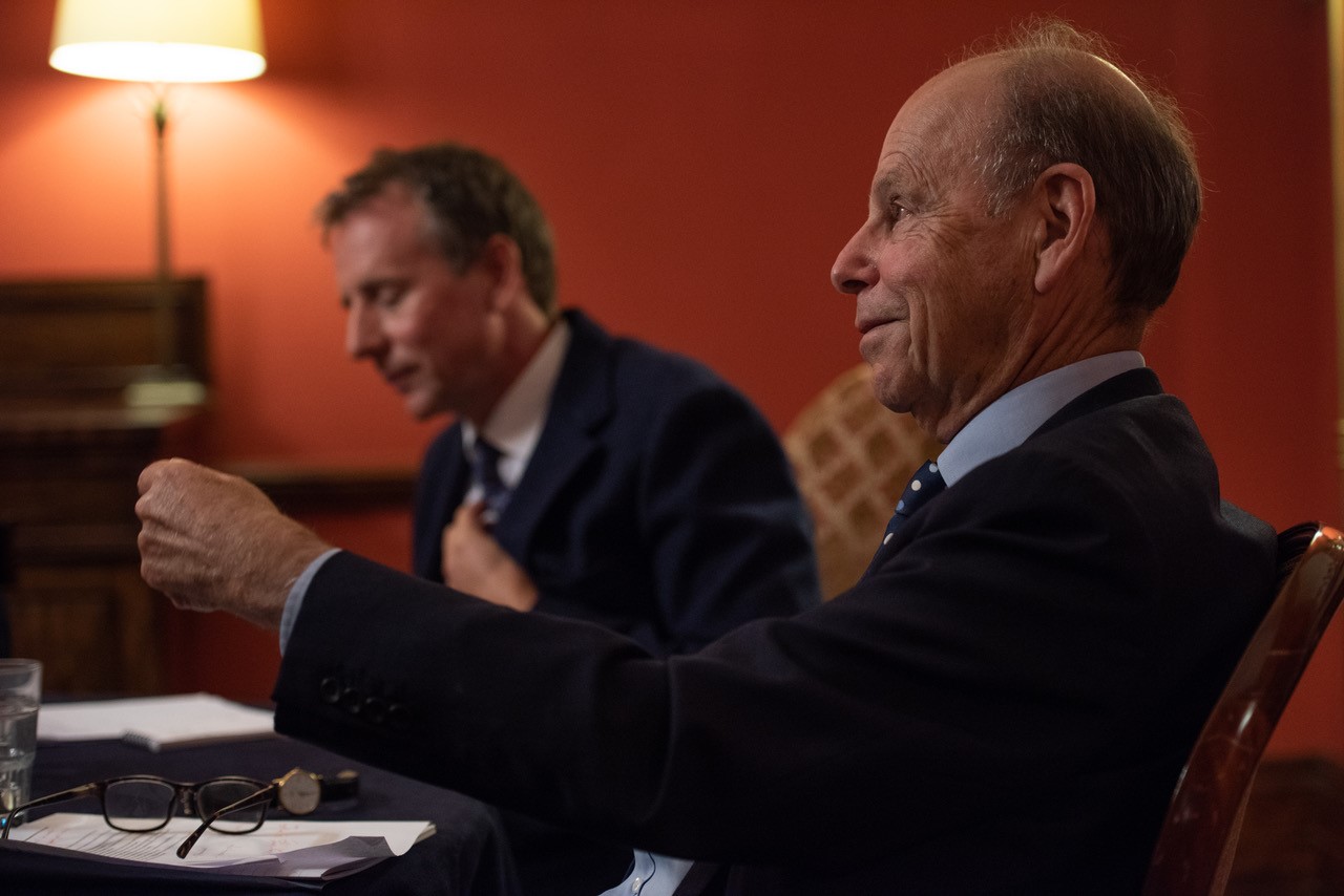 Last Friday (12 October) current and former Hertford lawyers gathered to hear Professor Sir Jeffrey Jowell QC (1961) and Michael Fordham QC (1983) in conversation. Among the topics of discussion were Sir Jeffrey’s extensive experience in constitutional law both in the UK and around the world, as well as Michael Fordham’s record as one of the country’s leading human rights’ lawyers. A gathered audience made up of undergraduate and graduate law students, as well as graduates now working across the legal spectrum engaged in a stimulating consideration of how these various laws and rights interact within UK legislation, with a specific interest in the impact that Brexit will inevitably have on such matters. Following the discussion, attendees enjoyed drinks in the Principal’s Lodgings and dinner in Old Hall. For more information on other upcoming events at Hertford College please see our events listings online or contact the Development Office.