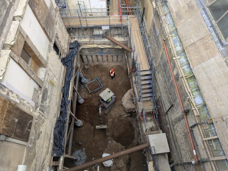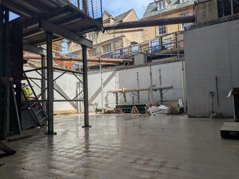Oxford Archaeology have completed the excavation in the ‘extension’ area and now have no permanent presence on site. It is anticipated that they will need to return to remove the three archaeological features within the extension area. These are two wells / soakaways and some medieval walls along the piling line with All Souls College.