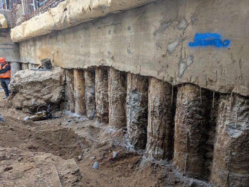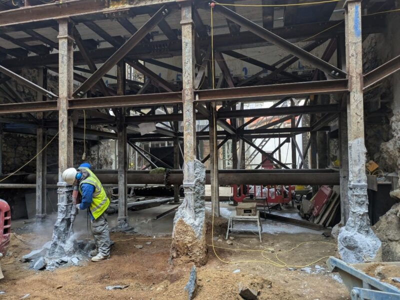 Under the former chapel, breaking out the south wall continued, together with prepping of the bearing piles in advance of the basement slab construction next week.