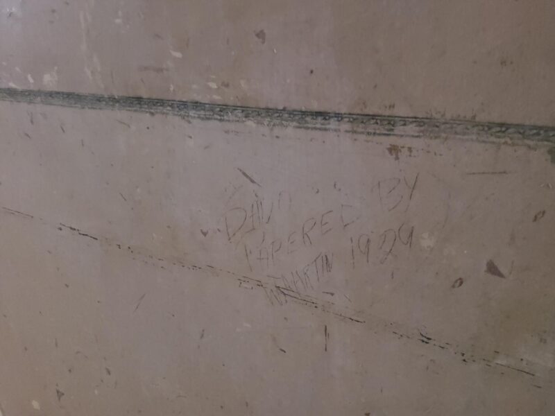 Finally, a previous worker left their mark in the West Range. It reads, ‘Dado papered by W Martin 1929’.